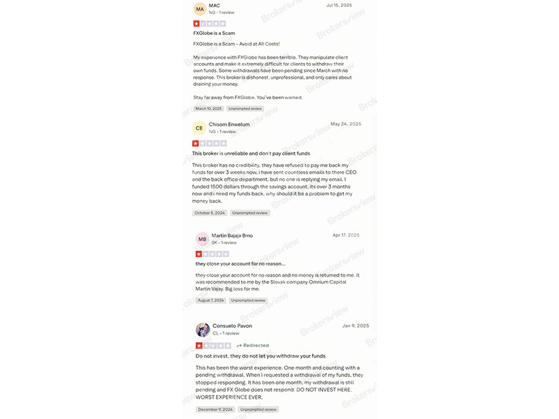 Selain itu, beberapa trader lain juga menceritakan bahwa setelah permintaan penarikan mereka tertunda selama sebulan, FXGlobe tiba-tiba berhenti merespons sama sekali. Ia memperingatkan orang lain untuk tidak berinvestasi di sini, sementara yang lain melaporkan bahwa akun mereka ditutup tanpa penjelasan dan tidak ada pengembalian dana yang pernah diberikan.