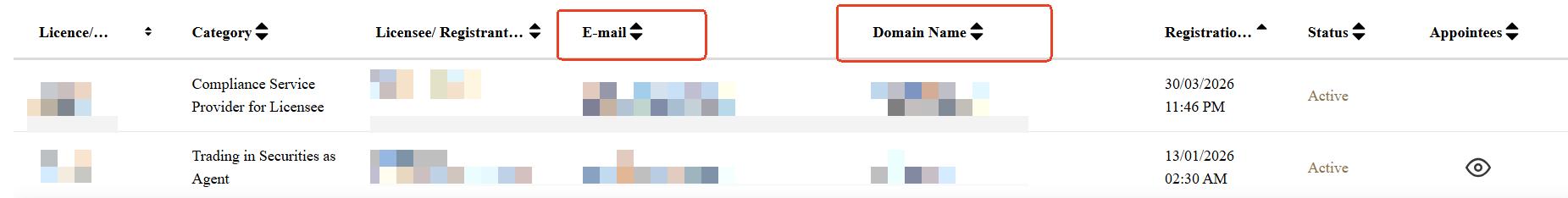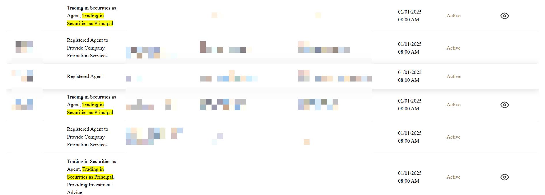 3. Pada saat yang sama, Anda perlu memeriksa apakah kolom "Kategori" untuk entitas yang terdaftar mencakup "Trading in Securities as Agent" dan "Trading in Securities as Principal".