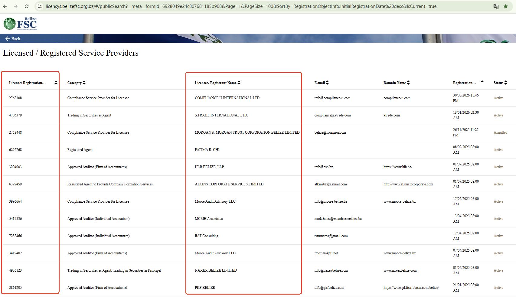 2. Buka https://licensys.belizefsc.org.bz/#/publicSearch?__meta__formId=6928049e24c807681185b908&Page=1&PageSize=100&SortBy=RegistrationObjectInfo.InitialRegistrationDate%20desc&IsCurrent=true,