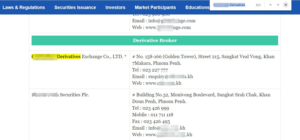 2. Cari nama dalam daftar Perantara di https://www.serc.gov.kh/ english/m52.php?pn=6 ;