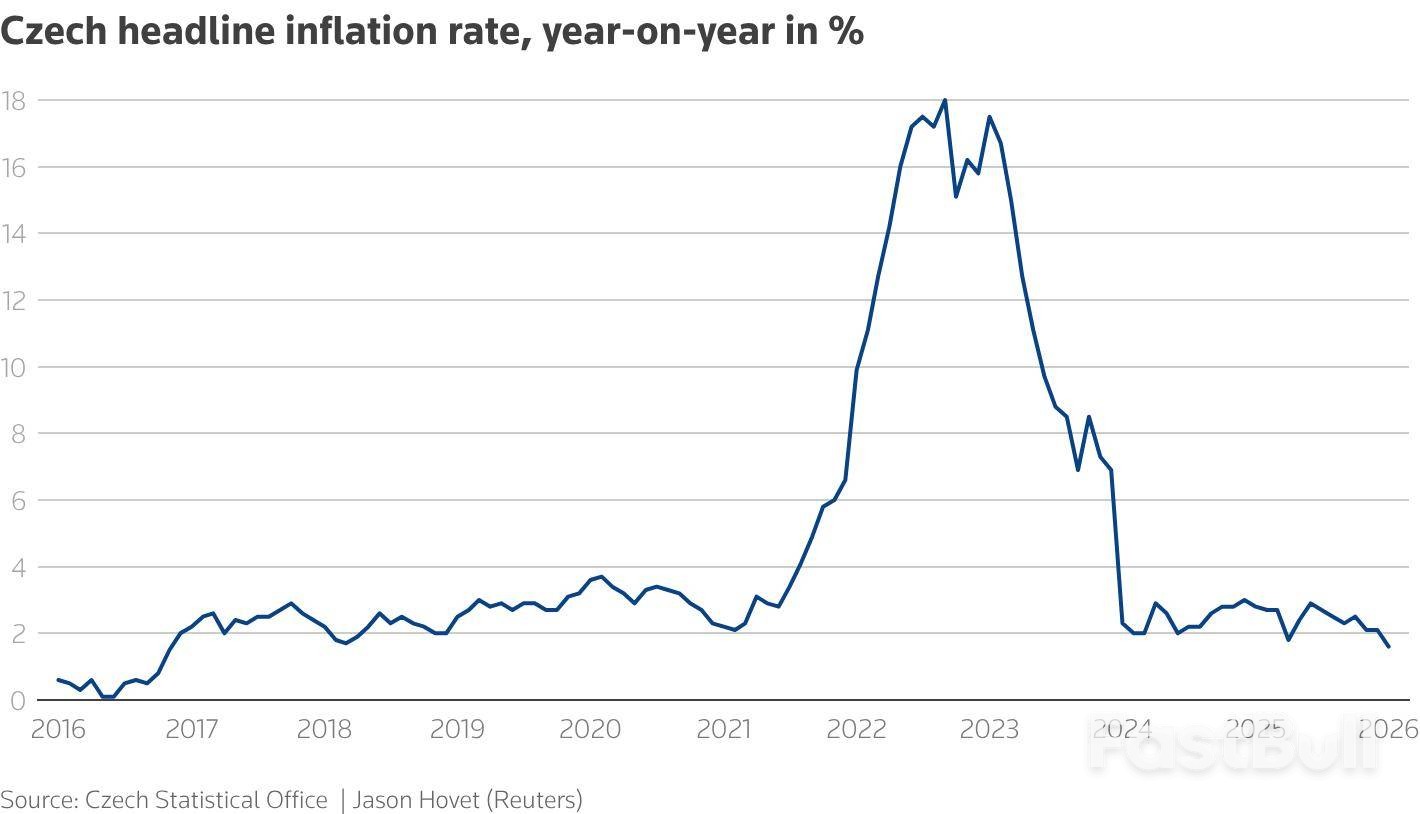 Inflasi utama Ceko anjlok ke level terendah sembilan tahun sebesar 1,6% secara tahunan pada bulan Januari, sebuah perkembangan yang dipicu oleh penurunan biaya energi yang telah mengintensifkan perdebatan tentang pemangkasan suku bunga di masa mendatang.