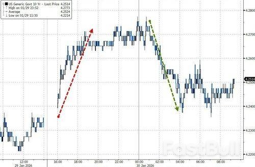 Imbal hasil obligasi pemerintah dibuka lebih tinggi pada hari itu... tetapi kemudian turun kembali seiring dengan jatuhnya harga saham...