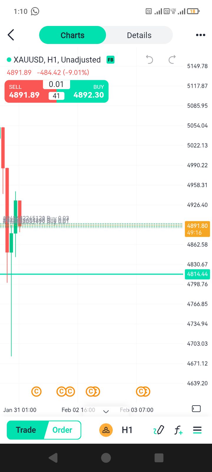[Harga Emas Spot Pulih di Atas $4900/Ons, Melonjak Lebih dari $200 dari Titik Terendah Harian] 31 Januari, Menurut Data Pasar Bitget, Harga Emas Spot Kembali ke $4900 per Ons, Pulih Lebih dari $200 dari Titik Terendah Harian
