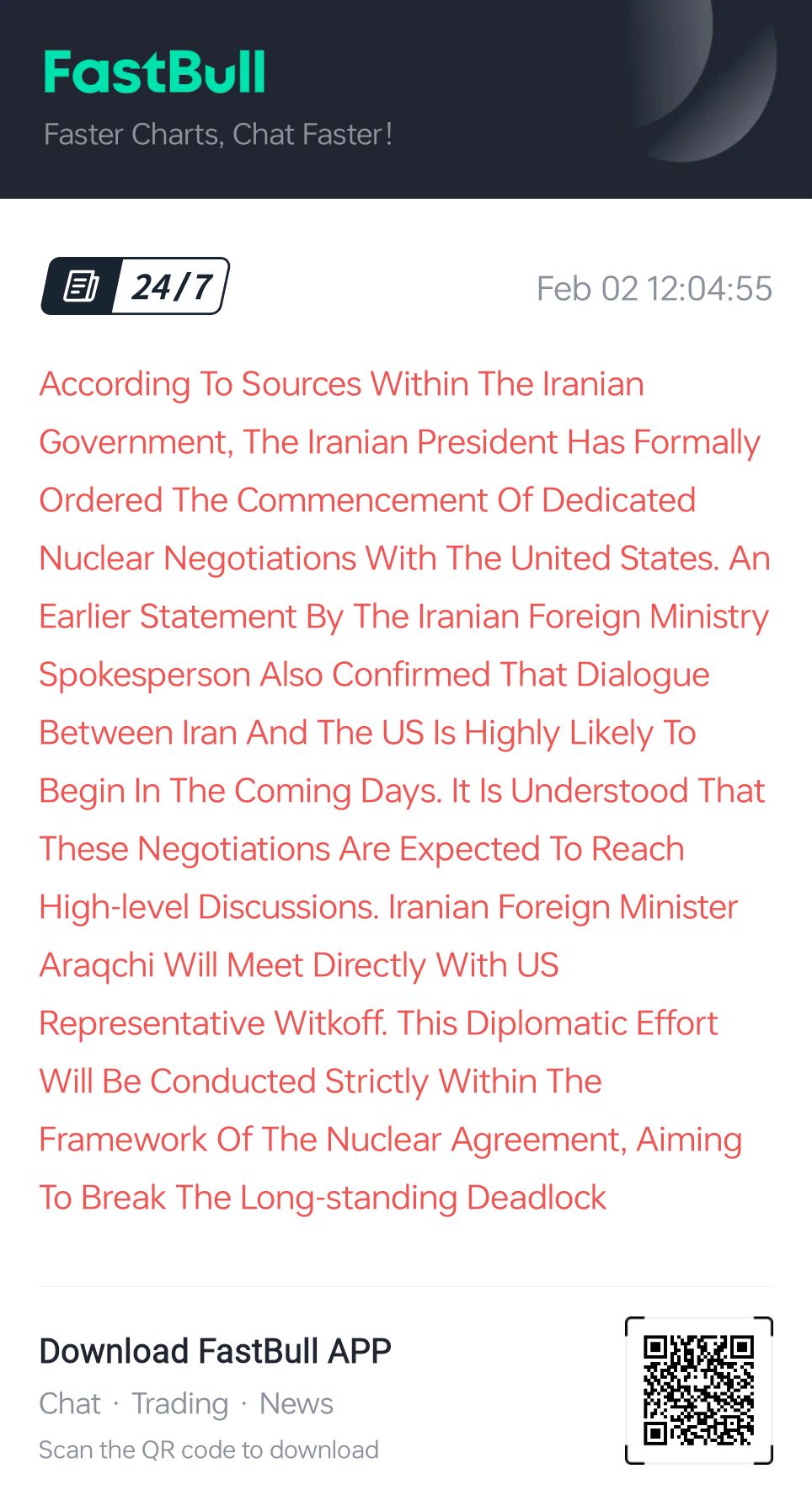 Menurut sumber-sumber di dalam pemerintahan Iran, presiden Iran secara resmi telah memerintahkan dimulainya negosiasi nuklir khusus dengan Amerika Serikat. Pernyataan sebelumnya dari juru bicara Kementerian Luar Negeri Iran juga mengkonfirmasi bahwa dialog antara Iran dan AS kemungkinan besar akan dimulai dalam beberapa hari mendatang. Dipahami bahwa negosiasi ini diharapkan mencapai pembahasan tingkat tinggi. Menteri Luar Negeri Iran Araqchi akan bertemu langsung dengan perwakilan AS Witkoff. Upaya diplomatik ini akan dilakukan sepenuhnya dalam kerangka perjanjian nuklir, dengan tujuan untuk memecahkan kebuntuan yang telah berlangsung lama.