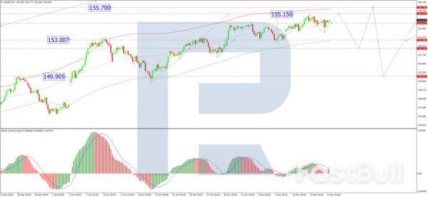 On the H4 chart, USD/JPY completed a growth wave to 155.00 and a subsequent correction to 153.63. The pair is now forming a tight consolidation range around this support level. An upward breakout from this range is expected to initiate the next leg of the rally, targeting 155.15 as an initial objective. This bullish scenario is confirmed by the MACD indicator, whose signal line is positioned above zero and pointing firmly upwards, indicating sustained positive momentum.