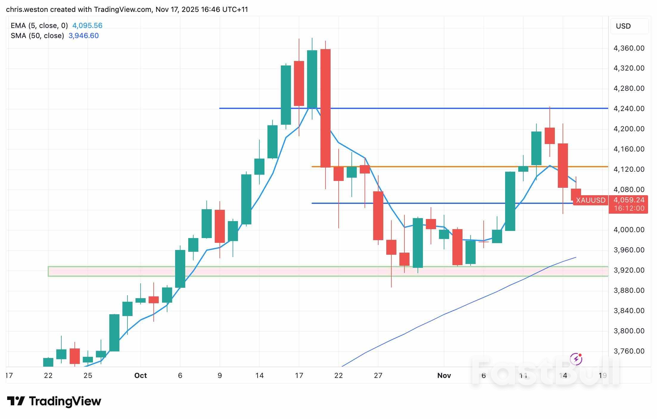 This morning, gold is trading around $4,080. On the downside, $4,050 and $4,000 could provide support; on the upside, a move back above $4,100 would put last week's high of $4,245 in focus as a key resistance for challenging historical highs.