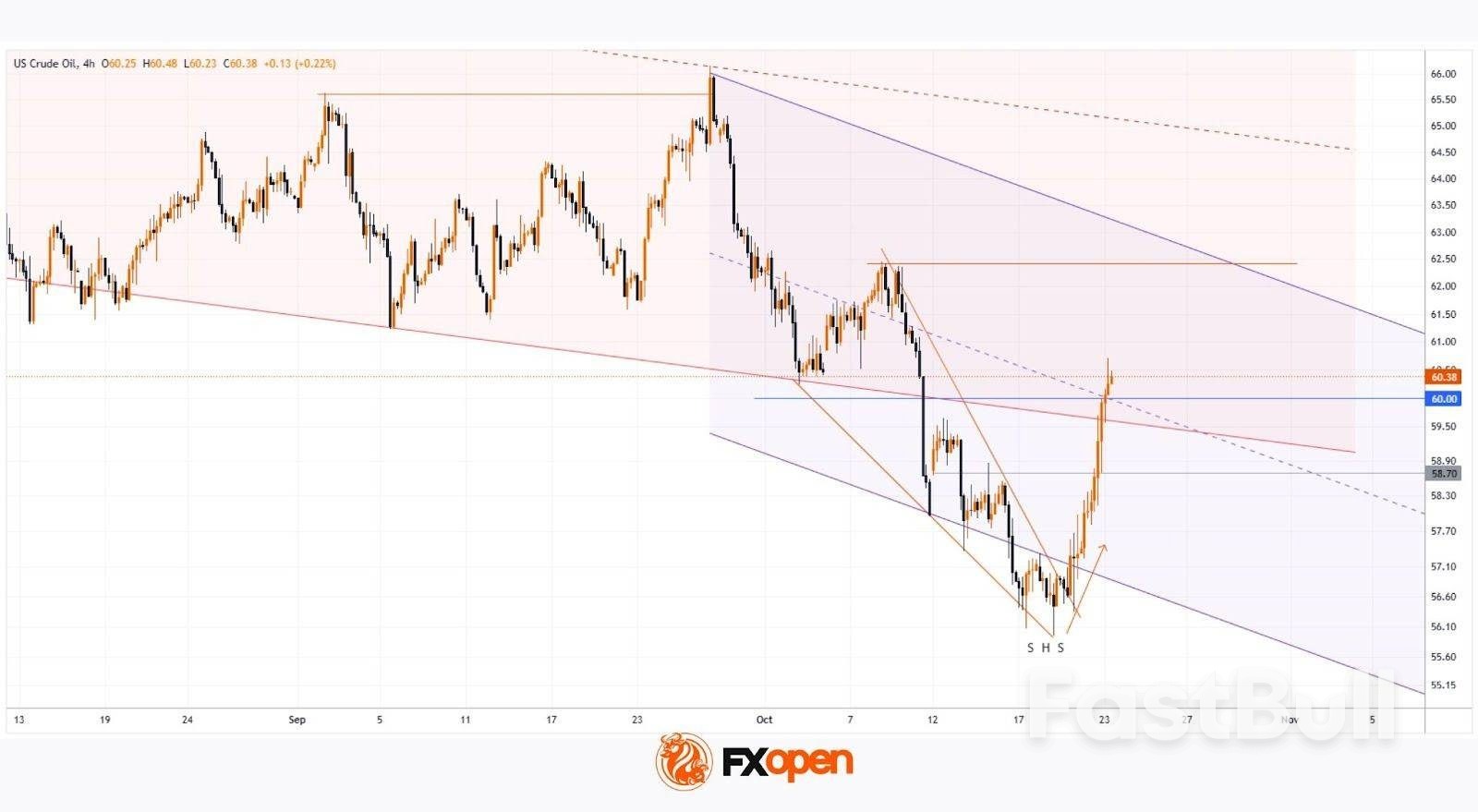 According to the XTI/USD chart, WTI crude is now trading above the key psychological level of $60, marking a sharp rebound of over 3% from October's lows.