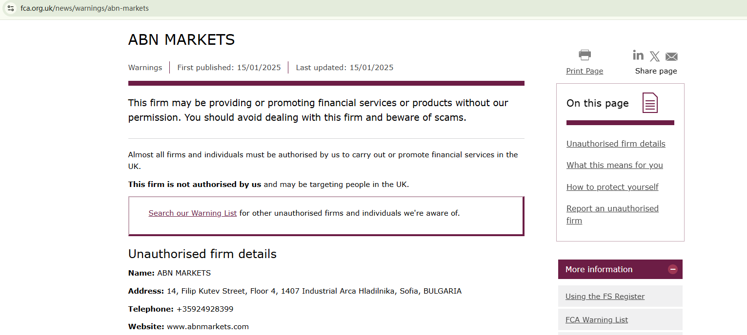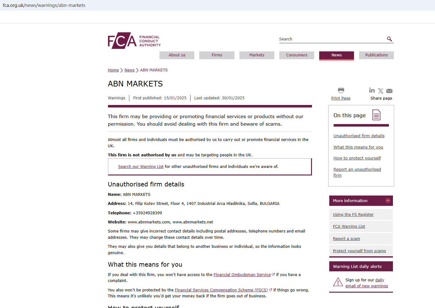 ANSWER ABN Markets is an unauthorized broker and should be avoided at all events. ABN Markets claims it has 9 years of experience in the trading market. However, when we checked its domain, we found it was created on 27 Aug 2021. So where are its 9 years of experience from? It is a red flag here.Downloading its official trading platform, we found this broker is located in Germany. So we did searching in the German regulator Federal Financial Supervisory Authority (BaFin), but we did not find any result matching ABN Markets in BaFin. The truth is, ABN Markets is not overseen by any regulator. We would recommend traders stay away from ABN Markets and any other unregulated brokers, since they are not subject to necessary laws and principles of operation, resulting in a high risk to trade with them.