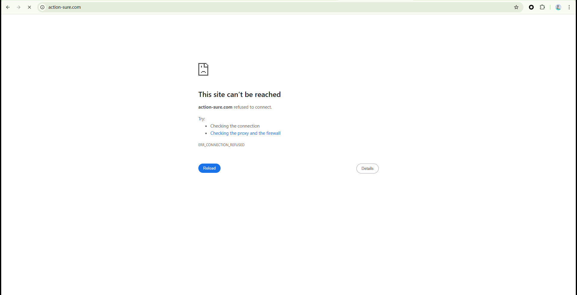 BrokersViewは、ドメイン「https://action-sure.com/」が現在アクセス不能であることを確認しました。ブローカーのウェブサイトの停止は、多くの場合、根本的な規制または運用上の問題を指し示すため、これは重要な赤旗と広くみなされています。