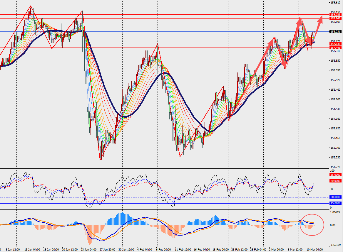 第一阻力位:159.00 第一支撑位:157.50