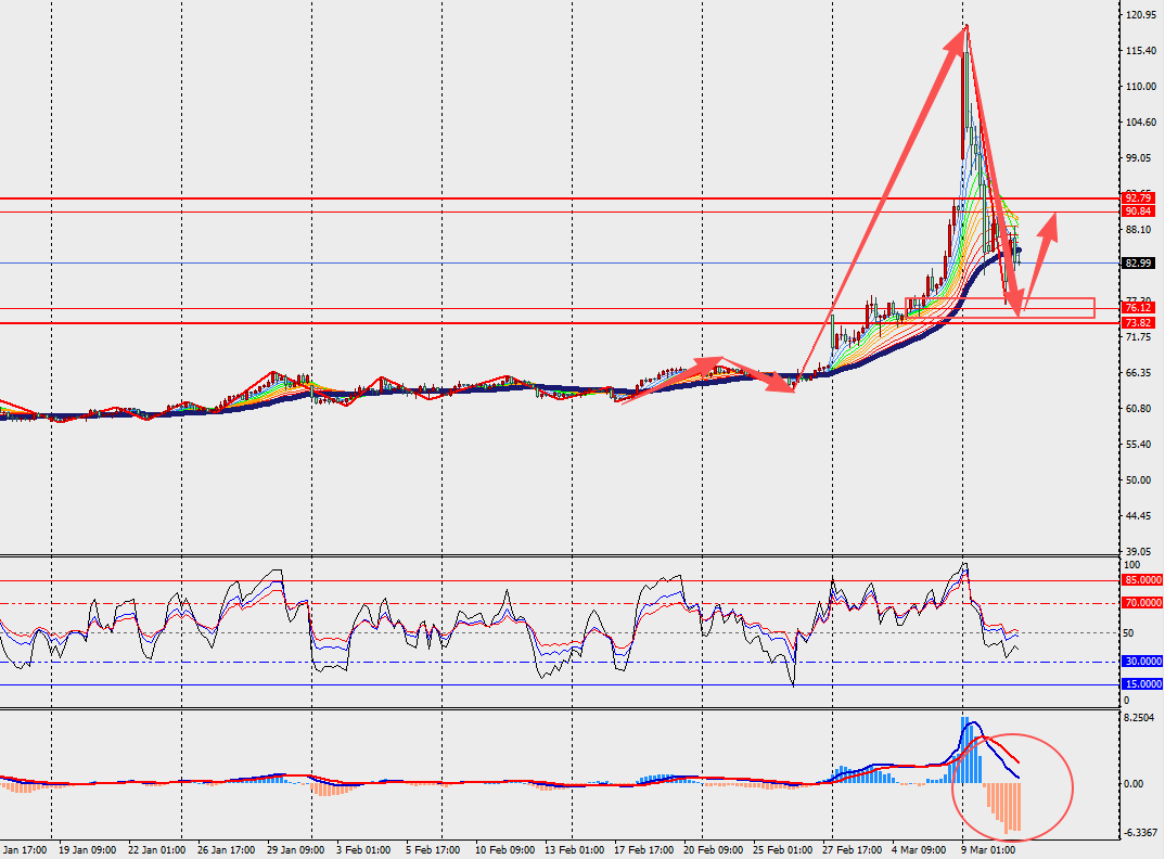 第一阻力位:87.00 第一支撑位:80.00