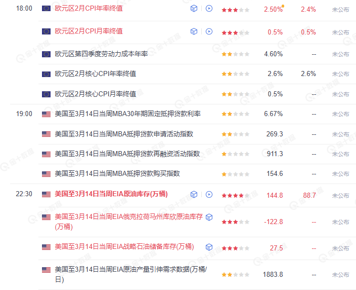 周三(3月19日)对美联储调查显示,经济衰退的风险上升至六个月来的最高水平,下调了2025年的经济增长预测,并上调了通胀预期。这些变化似乎主要源于对特朗普政府财政政策的担忧,尤其是关税,受访者现在认为关税已经取代了通胀,是美国经济面临的最大威胁。参与调查的受访者包括基金经理、策略师和分析师,他们将美国今年陷入经济衰退的可能性从1月份的23%上调至36%,1月份的这一数字曾降至三年来的最低点,似乎反映了特朗普当选后的初步乐观情绪。但与许多消费者和企业调查一样,现在的衰退可能性显示出对前景的相当担忧。消费者支出面临的风险偏向下行,再加上冻结的房地产市场和州和地方政府支出减少,目前的2025年GDP估计存在明显的下行风险。美元指数回落至103.20;非美货币分化,澳元兑美元到达0.6360,欧元兑美元震荡至1.0930附近,离岸人民币到达7.23。现货黄金上涨至3030美元附近,现货白银来到33.90美元附近。原油回落至66.70美元附近。