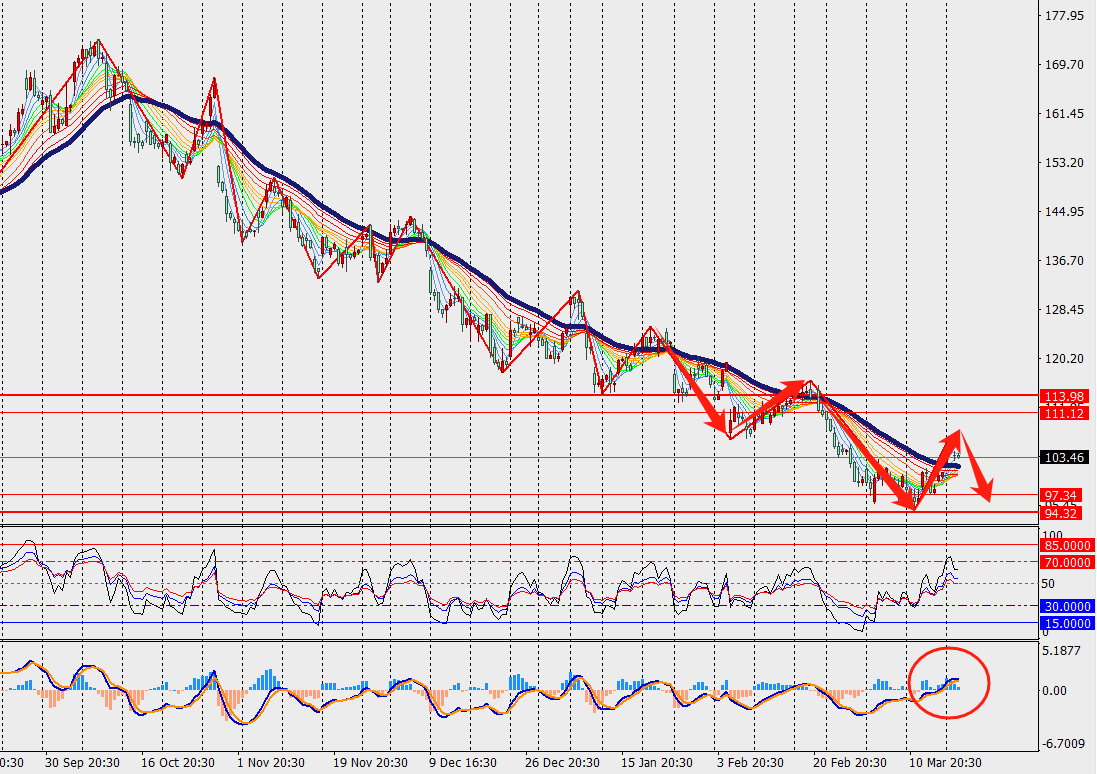 第一阻力位:110.00 第一支撑位:96.00