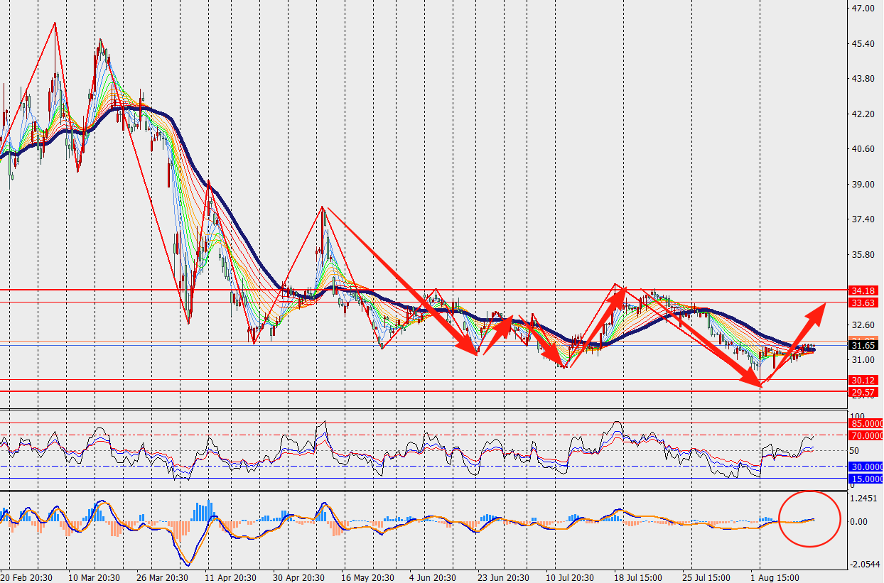 第一阻力位:33.00 第一支撑位:29.00