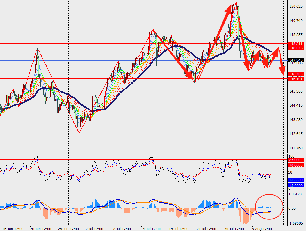 第一阻力位:148.00 第一支撑位:146.40