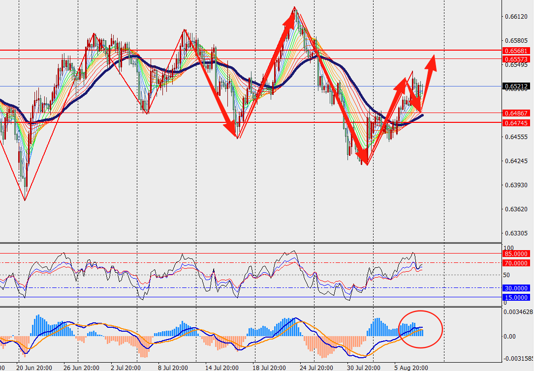 第一阻力位:0.6570 第一支撑位:0.6480