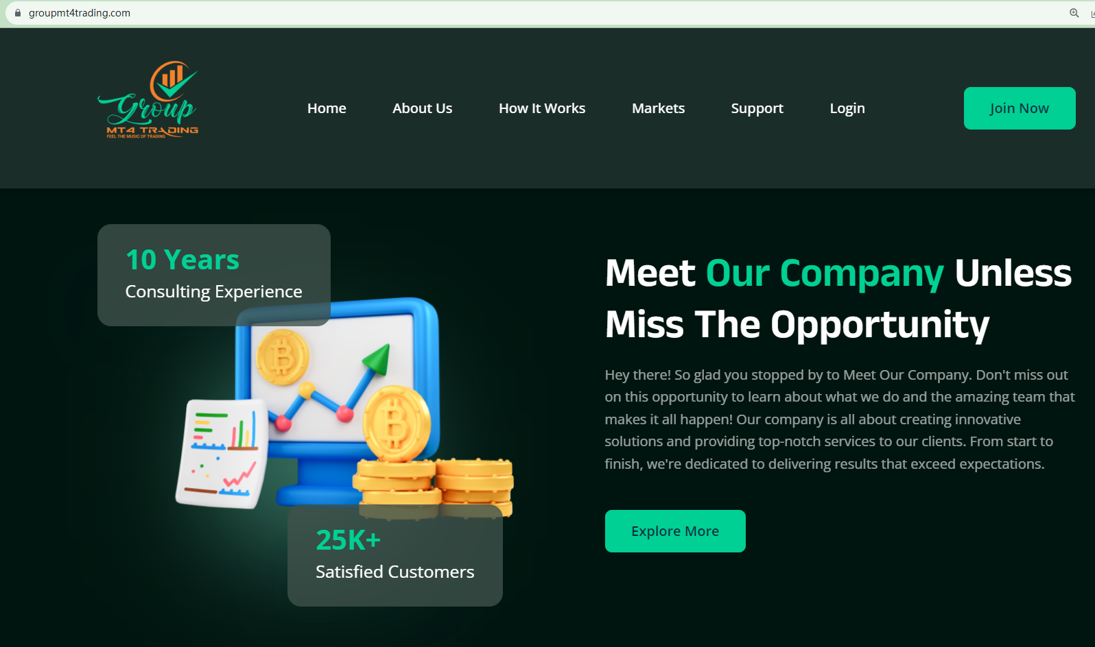 Groupmt4trading は、10 年間にわたってコンサルティング サービスを提供しており、これまでに 25,000 を超える顧客を抱えていると主張しています。ただし、Web サイトの設立はまだ 1 年未満です。この矛盾は、それが詐欺であることを強く示唆しています。