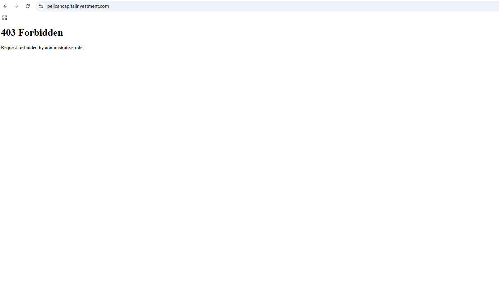 BrokersViewは、ドメイン「pelicancapitalinvestment.com」が現在アクセス不能になっていることを発見しました。ブローカーのウェブサイトが停止されるということは、多くの場合、根本的な規制上または運用上の問題が示唆されるため、これは重大な危険信号と広く認識されています。