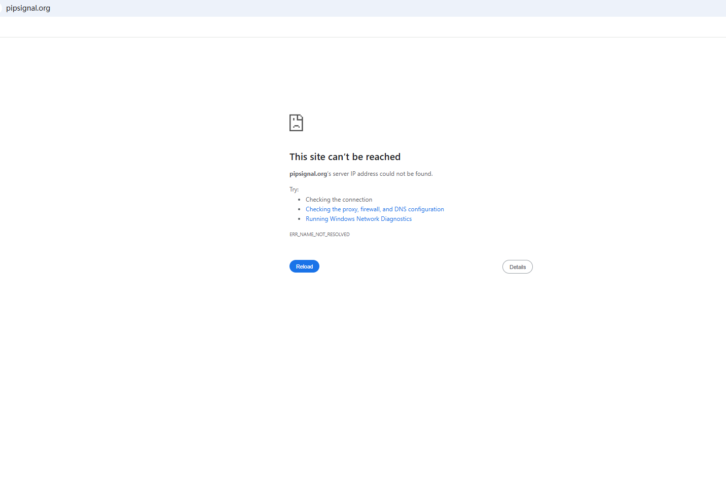 BrokersViewは、ドメイン「pipsignal.org」が現在アクセス不能になっていることを発見しました。ブローカーのウェブサイトが停止されるということは、多くの場合、根本的な規制上または運用上の問題が示唆されるため、これは重大な危険信号と広く認識されています。