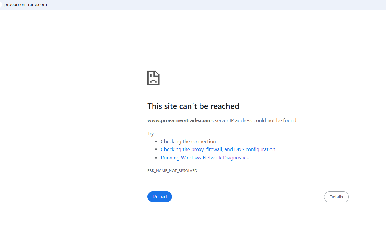 BrokersViewは、「https://www.proearnerstrade.com/」ドメインに現在アクセスできないことを確認しました。これは、ブローカーのウェブサイトへのアクセスをブロックすることが規制または運用上の問題を示唆することが多いため、重大な危険信号と見なされます。