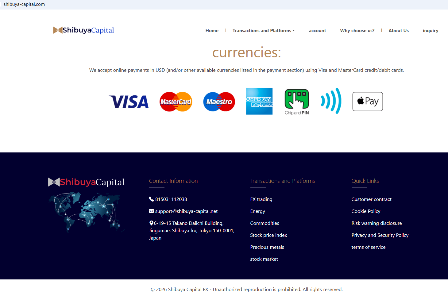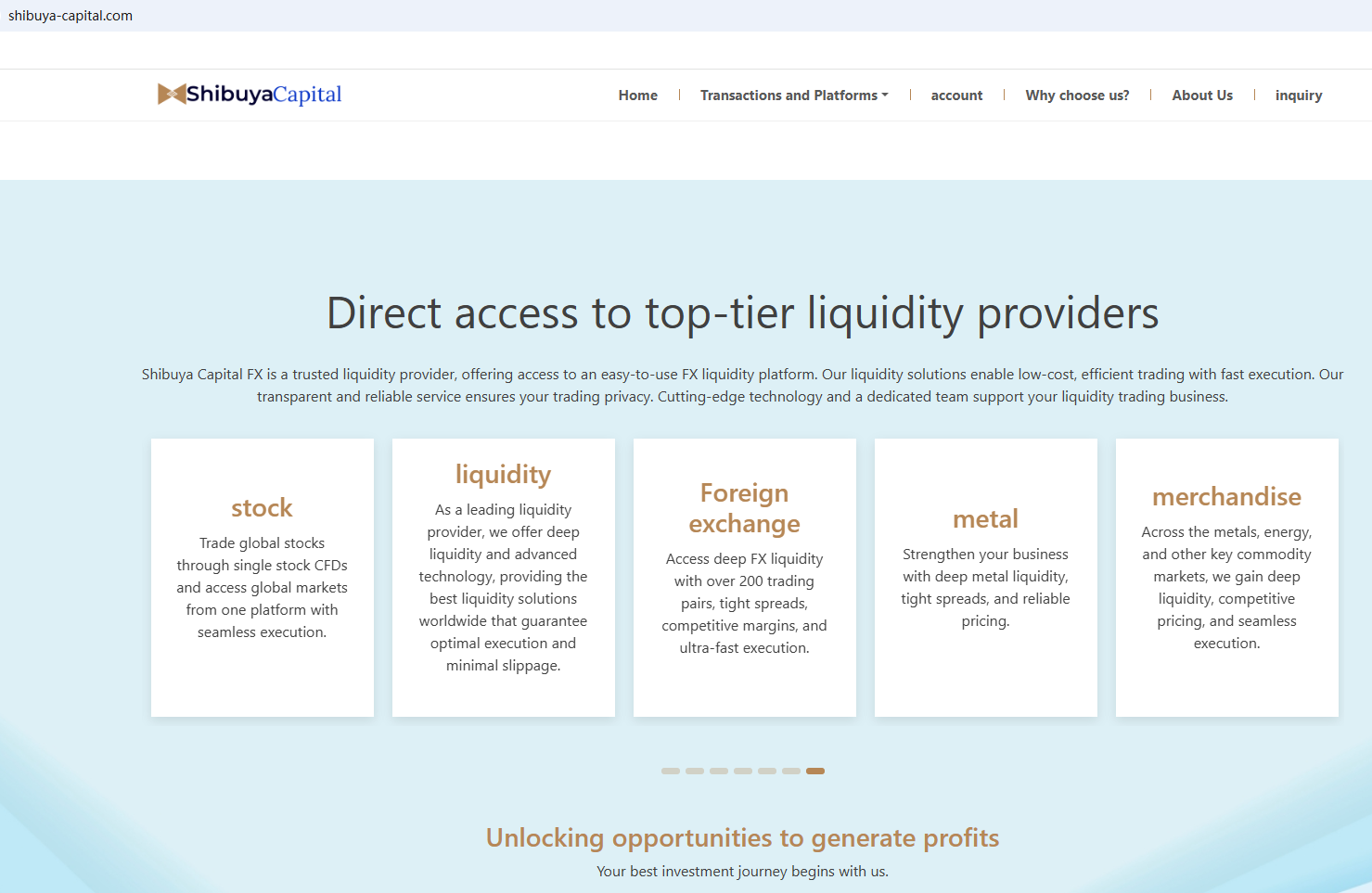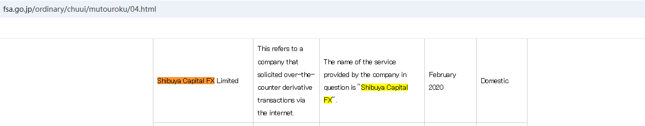 ウェブサイトによると、同社は日本に拠点を置いている。調査の結果、金融庁(FSA)が渋谷キャピタルに対し、必要な認可がないとして警告を発していたことが判明した。