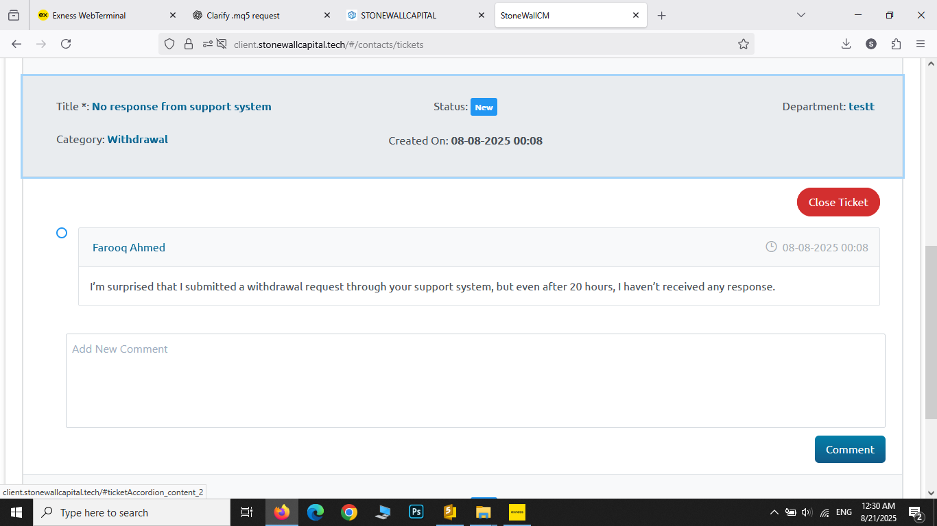 I warn Stone Wall’s administration to withdraw my funds immediately; otherwise, daily I will write a complaint against you on all website who are working in the field of trading. Any positive reviews or feedback online are likely fabricated by their own employees.