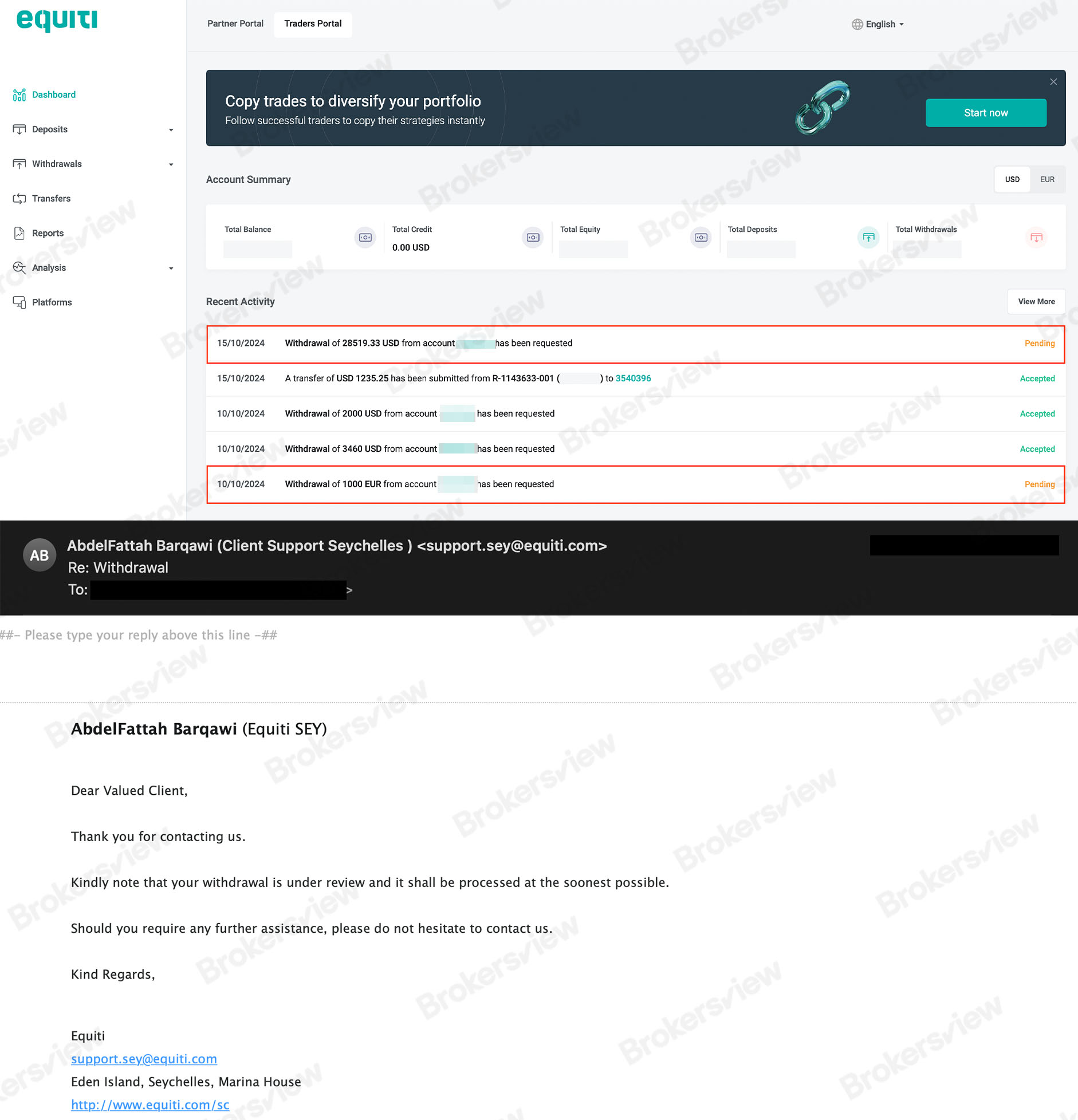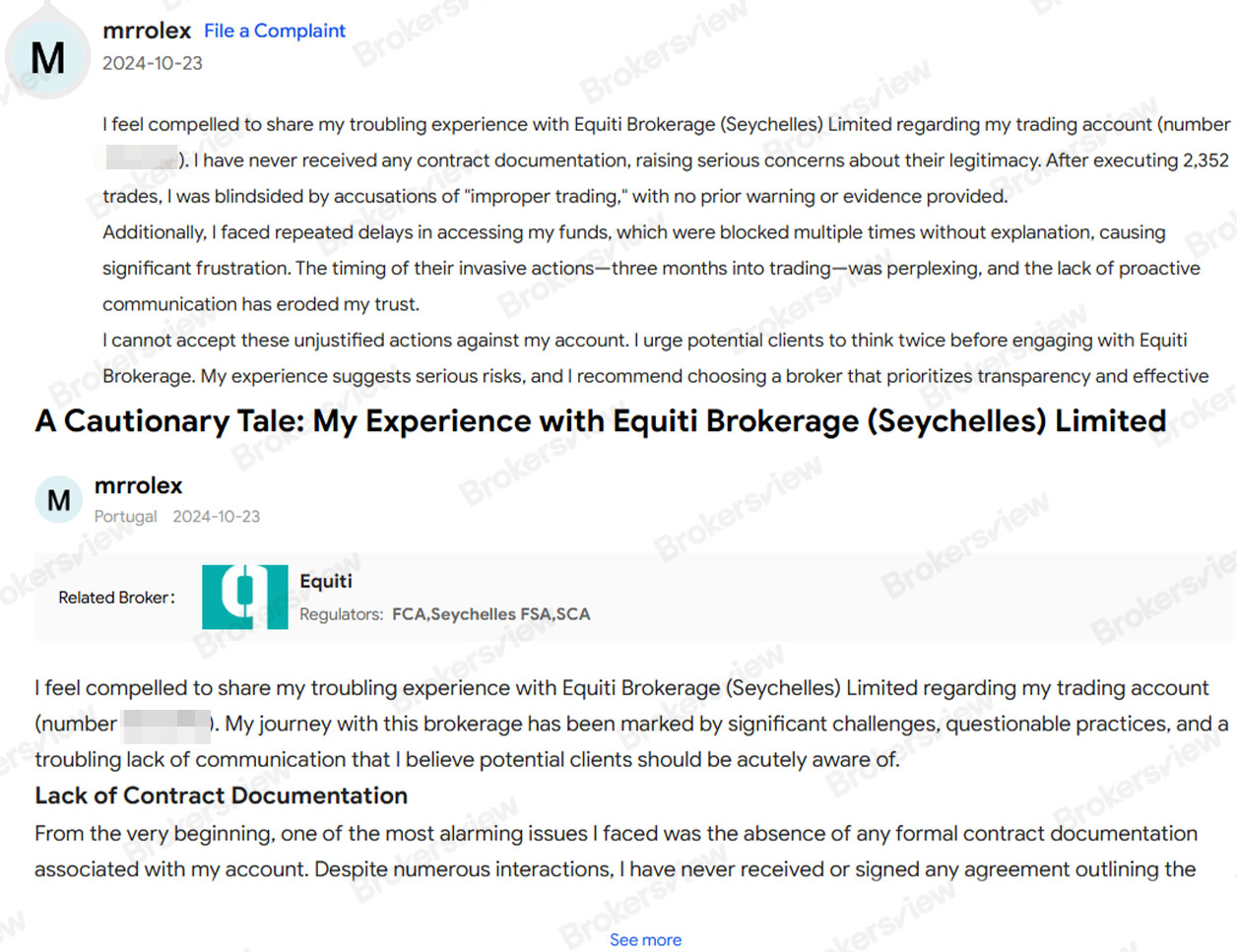 マルチアセットブローカー Equiti のセーシェル子会社 Equiti Brokerage (Seychelles) Limited は、顧客からの強い不満と不満を浮き彫りにする長期にわたる顧客からの苦情に直面しています。 「このブローカーとの私の経験は、重大な課題、疑わしい慣行、そして問題となるコミュニケーションの欠如に満ちており、これらのことは潜在的な顧客に明確にすべきだと思う」と顧客は述べた。