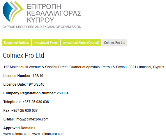 Mic-Marketは、キプロス、米国、南アフリカでライセンスを取得していると主張しています。しかし、BrokersViewによる調査により、これらの主張は真実ではないことが明らかになりました。具体的には、Mic-Marketのドメインは、キプロス証券取引委員会(サイSEC)ライセンス番号123/10は、ブローカーが正当なブローカーの詳細を盗んで信頼性があるように見せかけたことを示しています。さらに、全米先物協会(NFAの)は、Mic-Marketが提示したライセンス番号0557897記録しません。南アフリカの金融サービス委員会(FSB)は、外国為替取引業者やその他の金融サービスプロバイダーを監督しなくなりました。