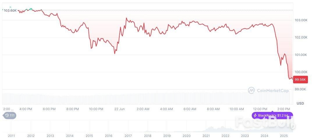 ビットコイン(BTC)の日足チャート、2025年6月23日14:19 UTCのCoinMarketCapのスクリーンショット。出典: CoinMarketCapイランの最高指導者アヤトラ・アリ・ハメネイ師の後継者を探している高位聖職者らにとって、時間は刻々と迫っている。