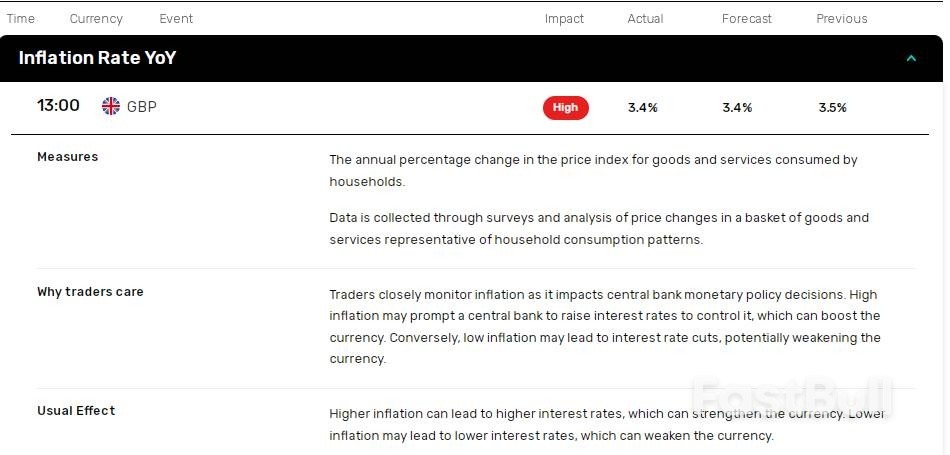 英国の年間インフレ率(ヘッドライン)は、4月の3.5%から5月には3.4%に低下し、コンセンサス予想の3.4%と一致しました。コアインフレ率は5月に3.8%から3.5%に低下し、コンセンサス予想の3.6%を下回りました。