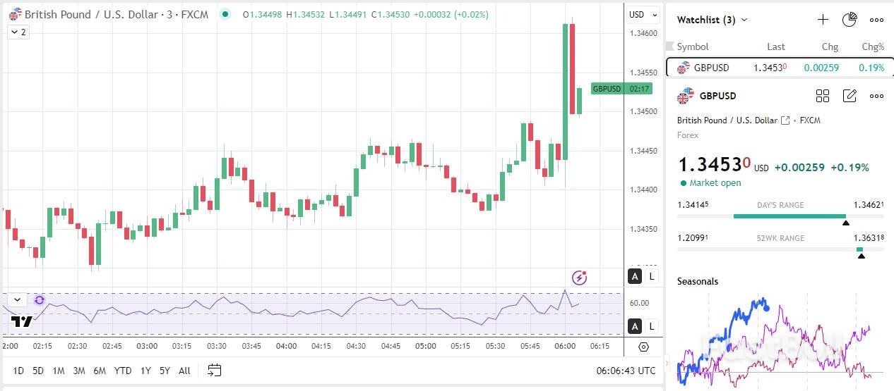 6月18日水曜日、GBP/USDは0.19%上昇し、1.34530ドルとなった。この上昇は、インフレの高止まりがイングランド銀行の政策見通しに潜在的な影響を与える可能性を示唆していると考えられる。