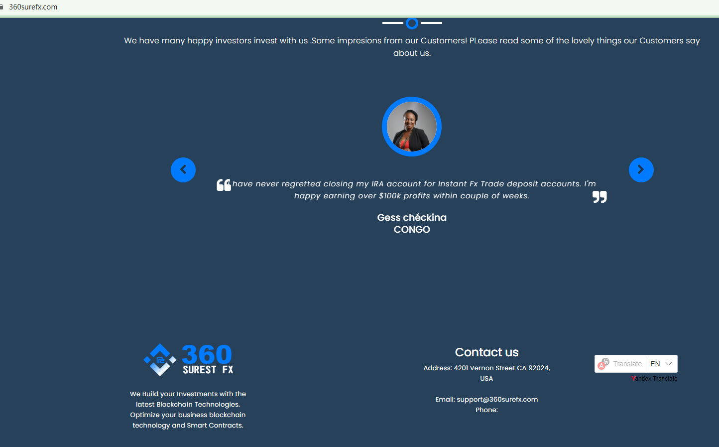 360 Sure Fx의 웹사이트는 디자인이 잘못되어 법적 양식과 같은 기본 요소가 부족합니다. 이 웹사이트는 사기 거래 플랫폼의 지표로 여겨지는 고객 서비스 전화선을 제공하지 않습니다.