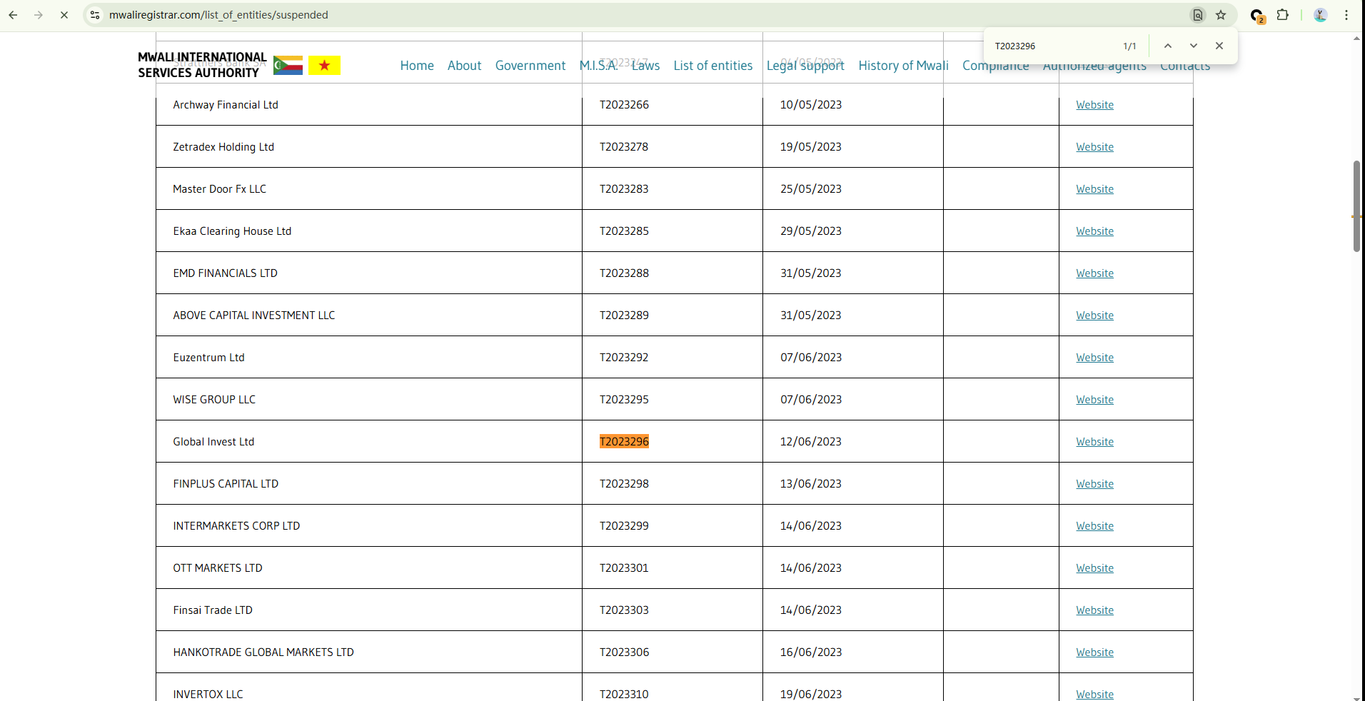 조사 결과, MWALI 국제 서비스 당국(MISA)에서 발급한 FiatVisions의 라이선스가 정지된 것으로 확인되었습니다. 이는 회사가 운영을 중단했거나 라이선스를 상실했을 수 있음을 시사합니다.