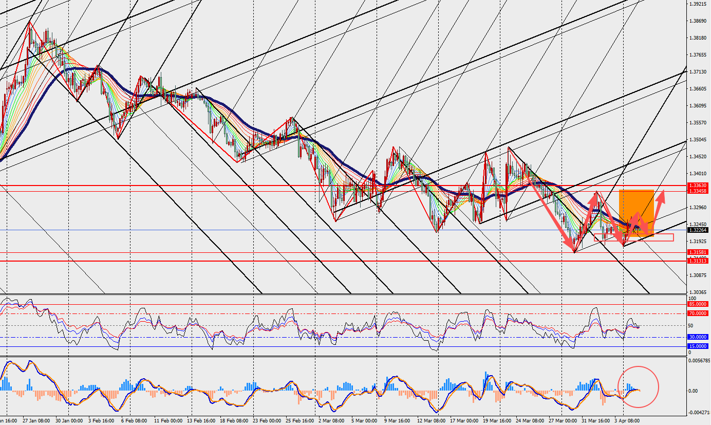 We can see GBP/USD is hovering at low levels on the H4 chart, trading around the 48 hours moving average. At the same time, the MACD double line and histogram bars are contracting below the zero line. The buy limit could be placed, stop loss is necessary.