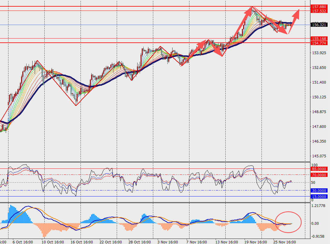 第一阻力位:157.00 第一支撑位:155.50