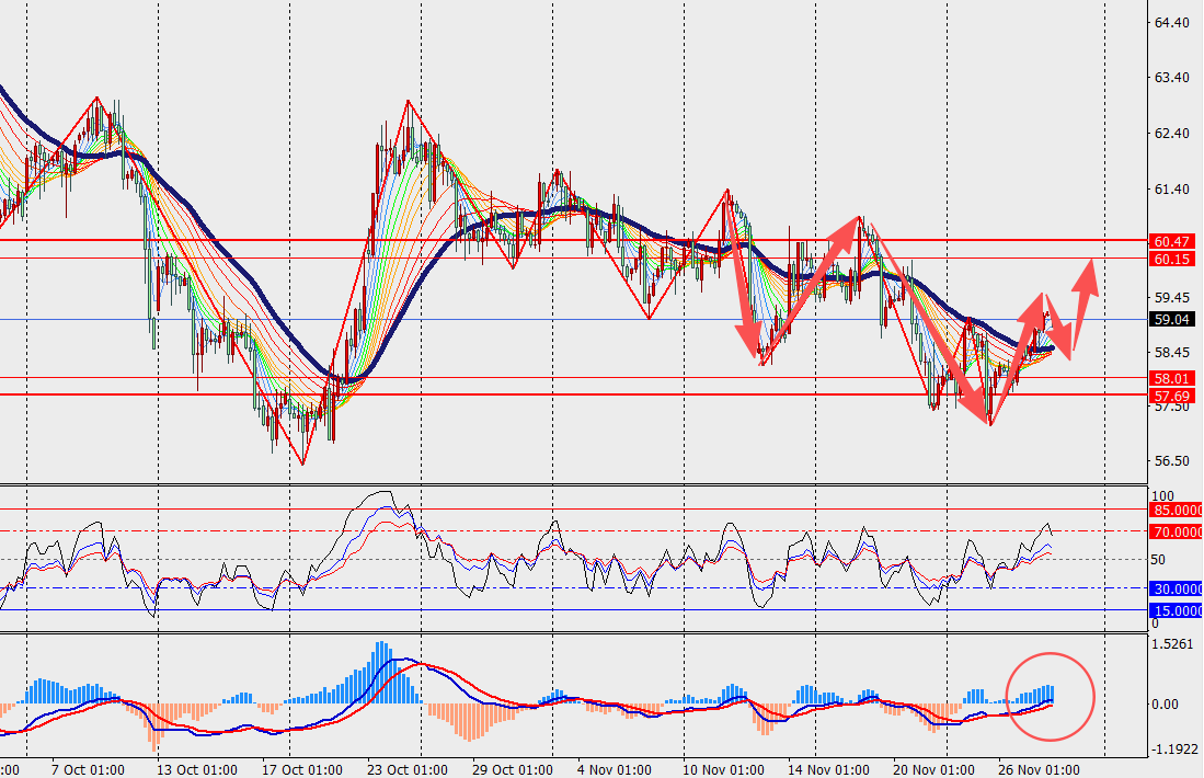 第一阻力位:62.00 第一支撑位:57.00