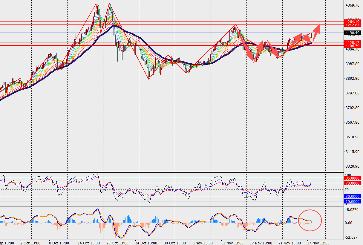 第二阻力位:4225.00 第二支撑位:4154.00