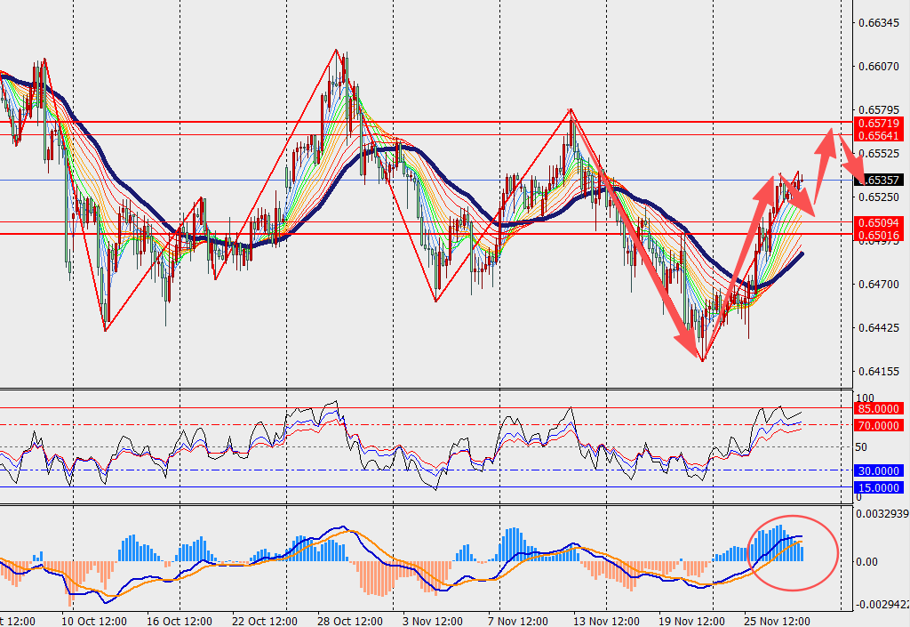 第一阻力位:0.6580 第一支撑位:0.6490