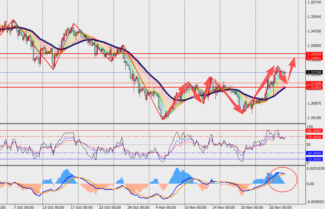 第一阻力位:1.3290 第一支撑位:1.3180