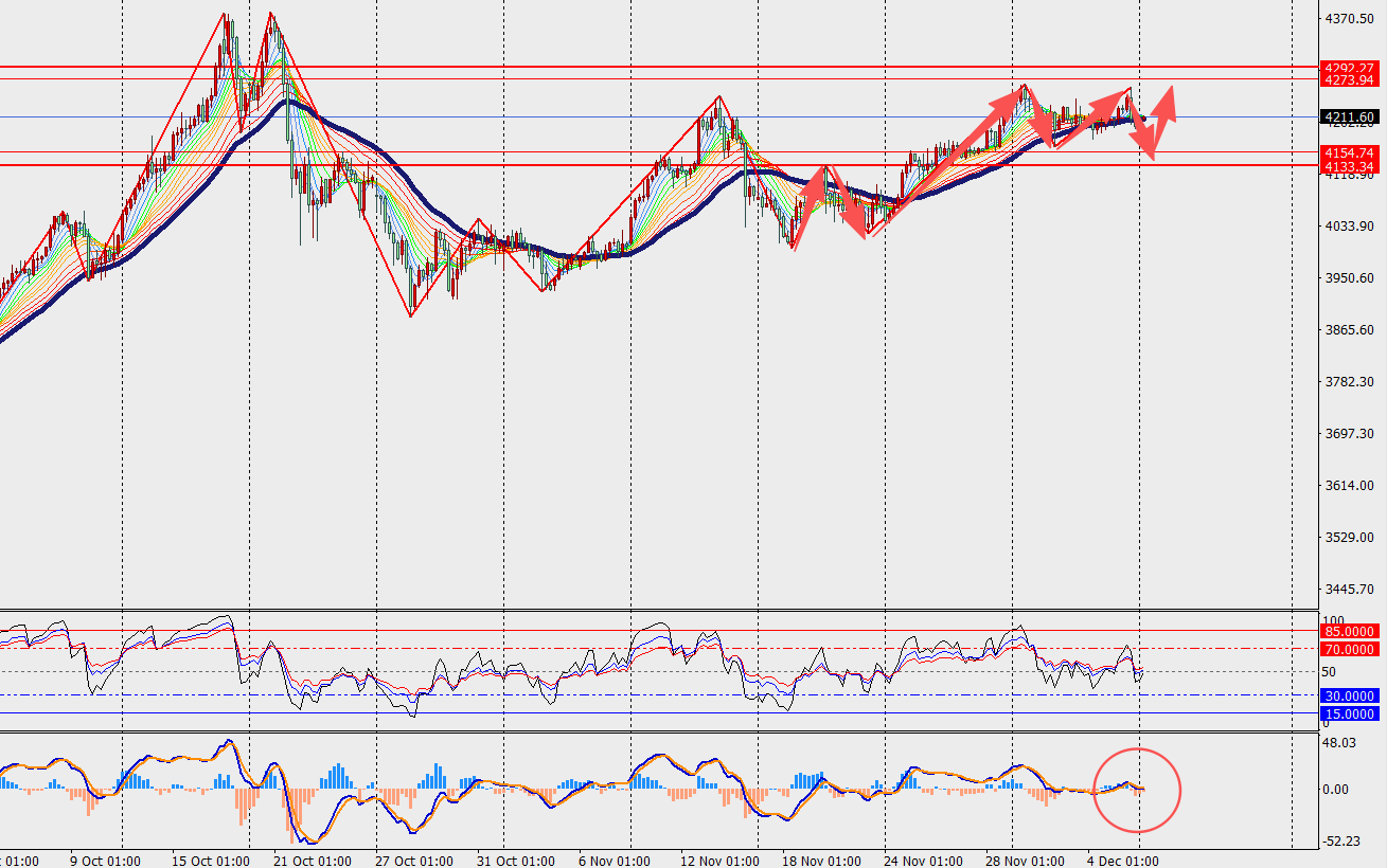 第一阻力位:4232.00 第一支撑位:4200.00