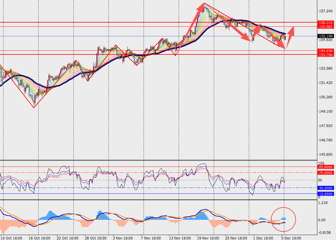 第一阻力位:156.00 第一支撑位:154.50