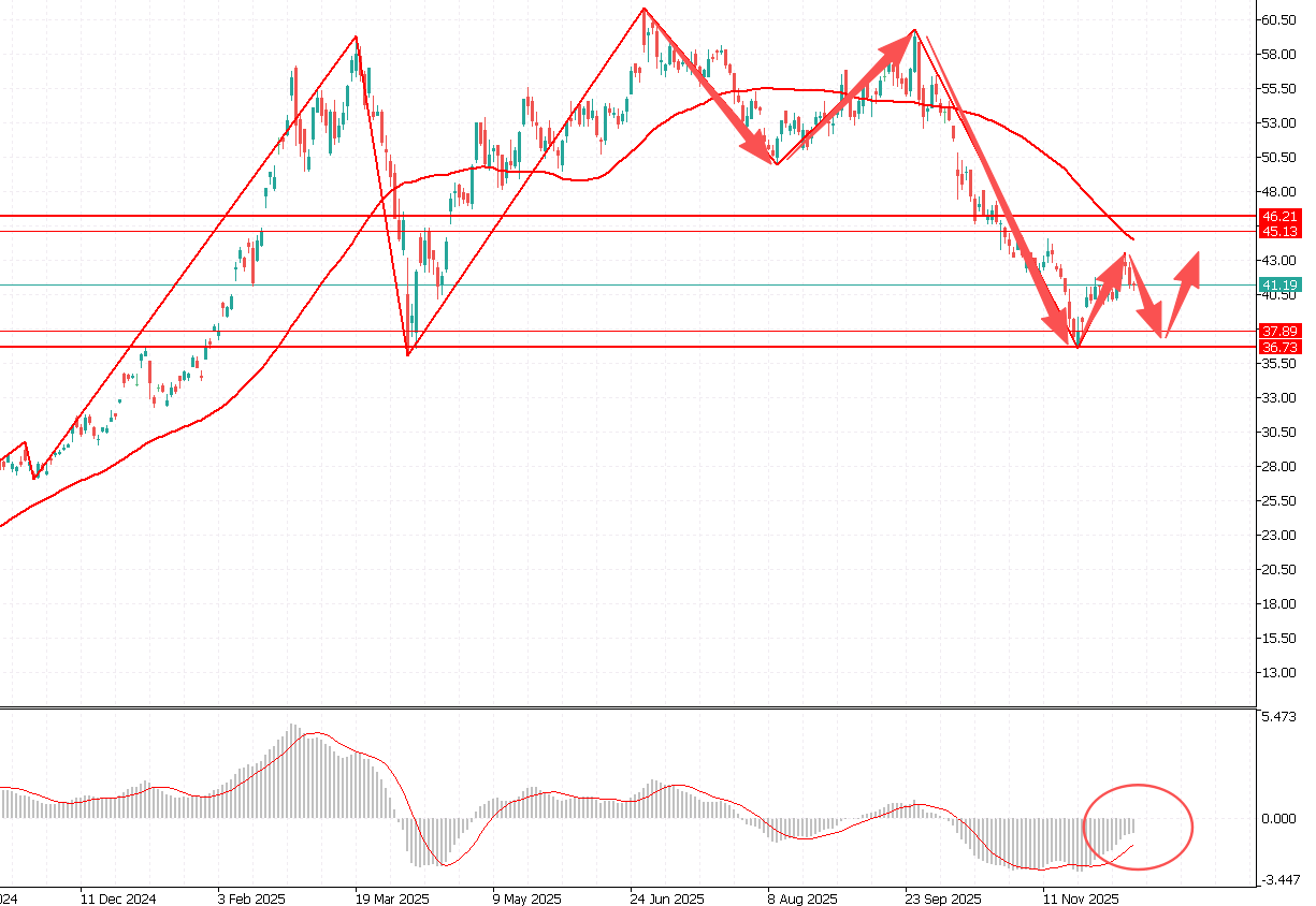 第二阻力位:45.00 第二支撑位:37.00