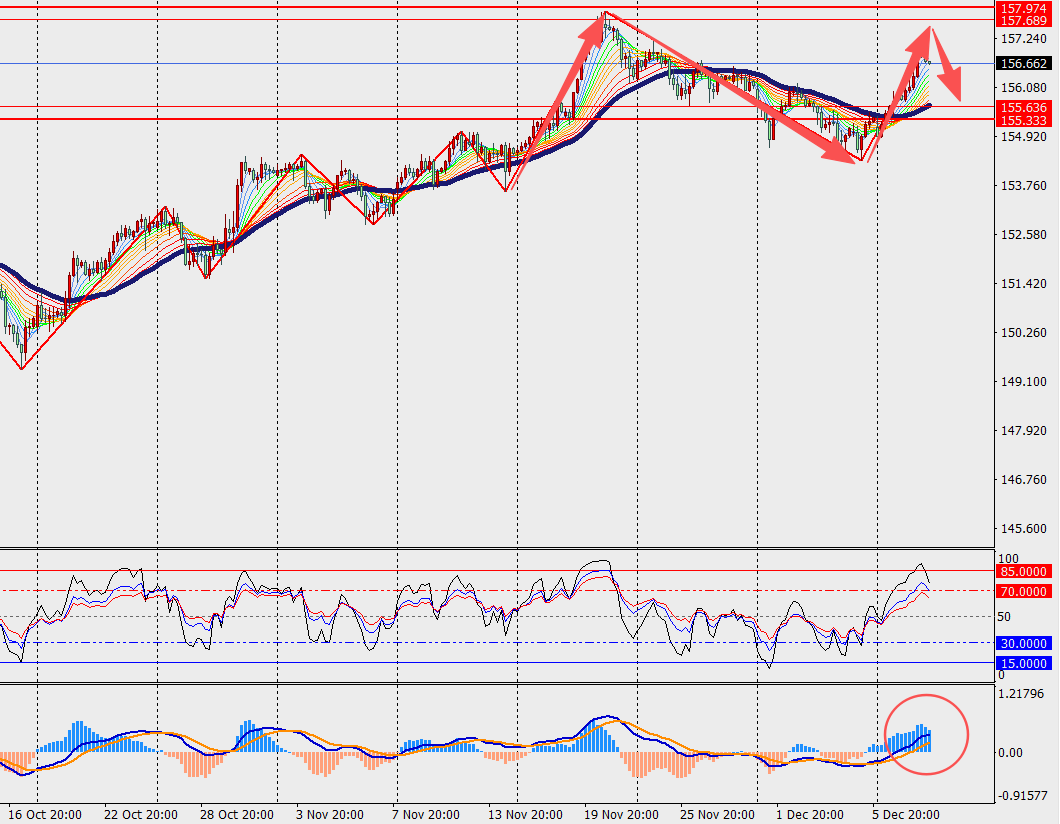 第一阻力位:157.50 第一支撑位:156.00