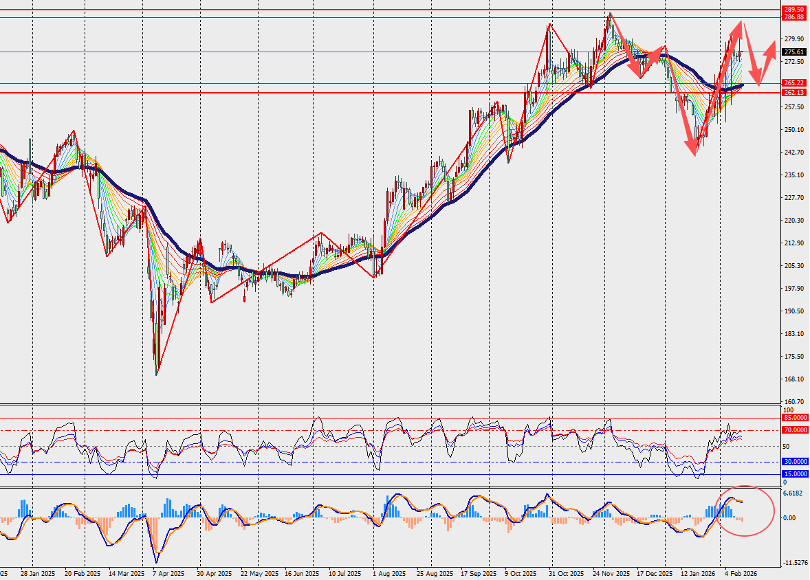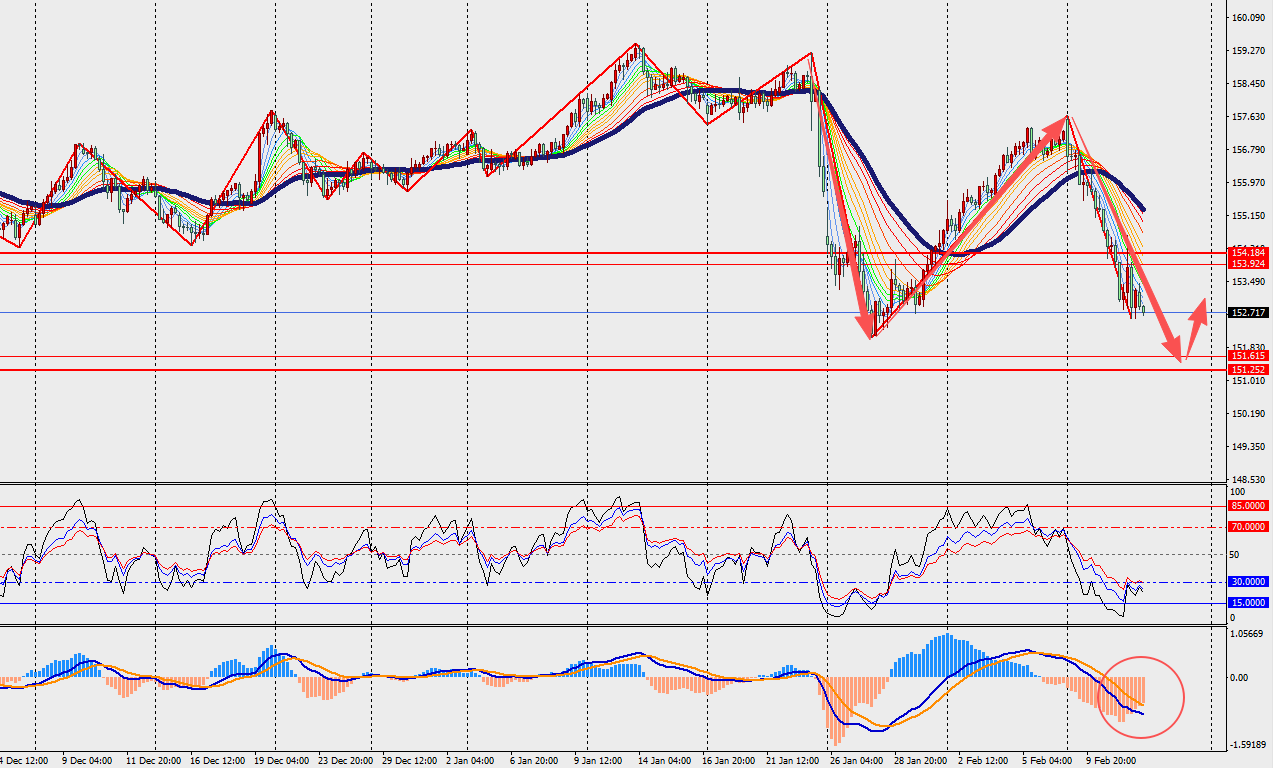 技术面:美元兑日元H4级别持续回落,并在48日多空分界线下方运行。然而,MACD双线和量能柱在零轴下方不断收敛。如果市场预期高市政府能够在适度财政扩张的前提下落实增长战略,未来三个月最早可能出现高达10万亿日元的外资净买入。
