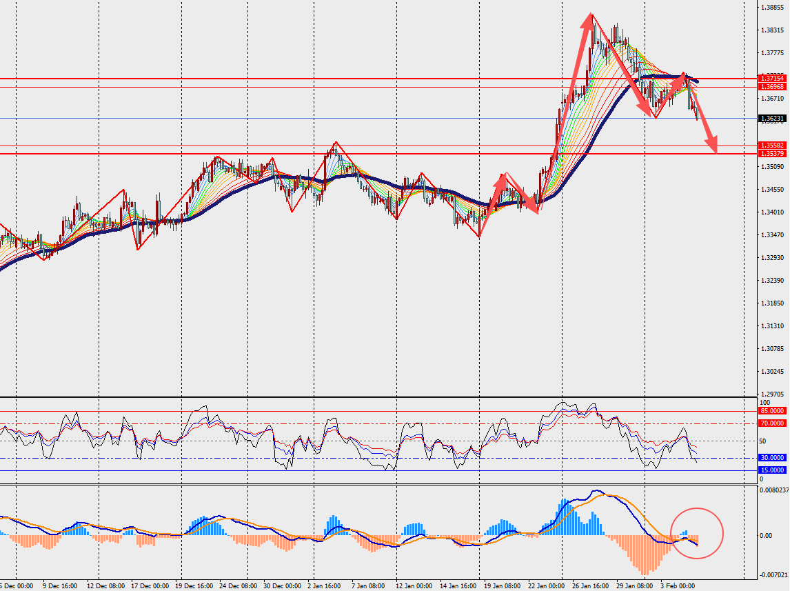 第一阻力位:1.3680 第一支撑位:1.3570