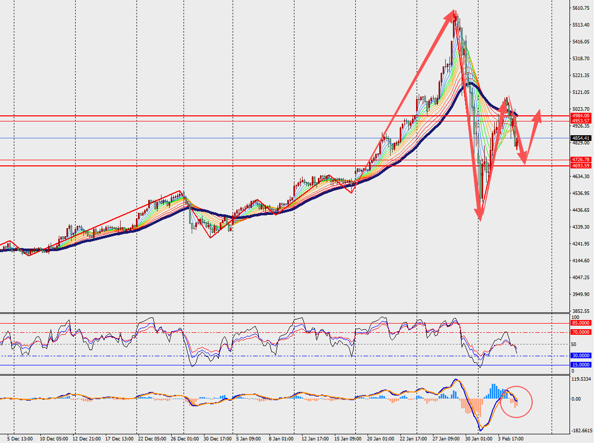 第二阻力位:4890.00 第二支撑位:4810.00
