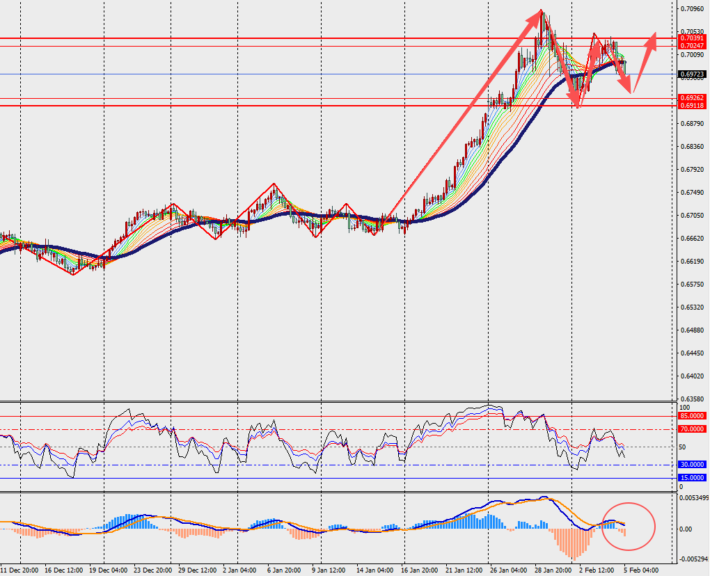 第一阻力位:0.7020 第一支撑位:0.6920