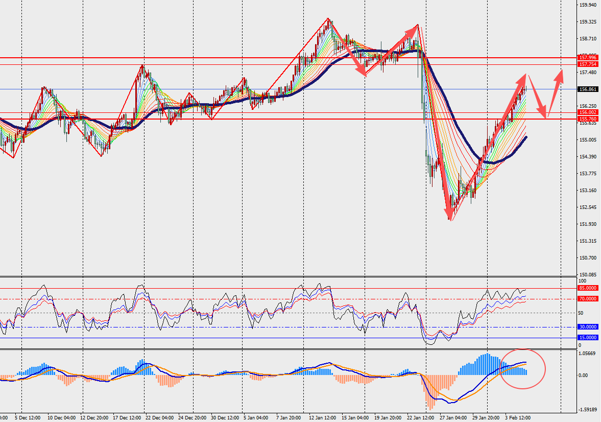 第一阻力位:157.70 第一支撑位:156.00