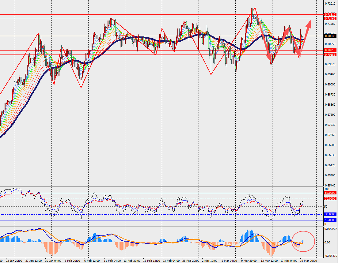 技术面:澳元兑美元H4级别大幅反弹,并在48日多空分界线附近运行。此外,MACD双线和量能柱在零轴附近扩张。澳洲联储表示,如果生产率未能如预期改善,与人工智能相关的投资可能面临大幅抛售风险。