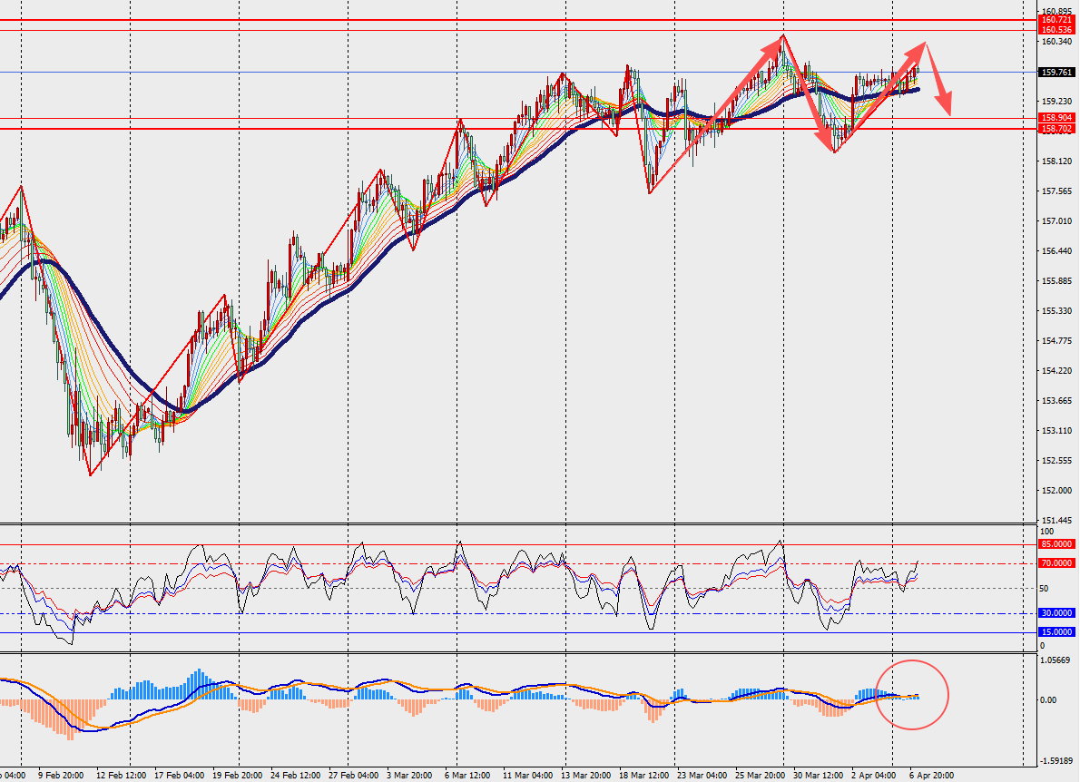 基本面:美元兑日元此前一周,汇价再次逼近160整数关口,但随着伊朗局势出现停火框架消息,避险美元面临抛压,而日元在潜在干预担忧下未能进一步走弱。原油价格维持高位震荡,霍尔木兹海峡紧张态势虽有缓和迹象,但仍对全球能源供应链构成压力,日本作为主要原油进口国,其经济前景承压进一步凸显。